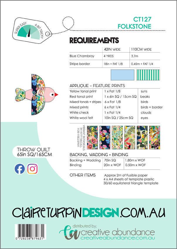 Folkstone is a large lap quilt pattern great for beginners upward. Easy to follow instructions and the block construction makes it easy to reduce or increase in size.